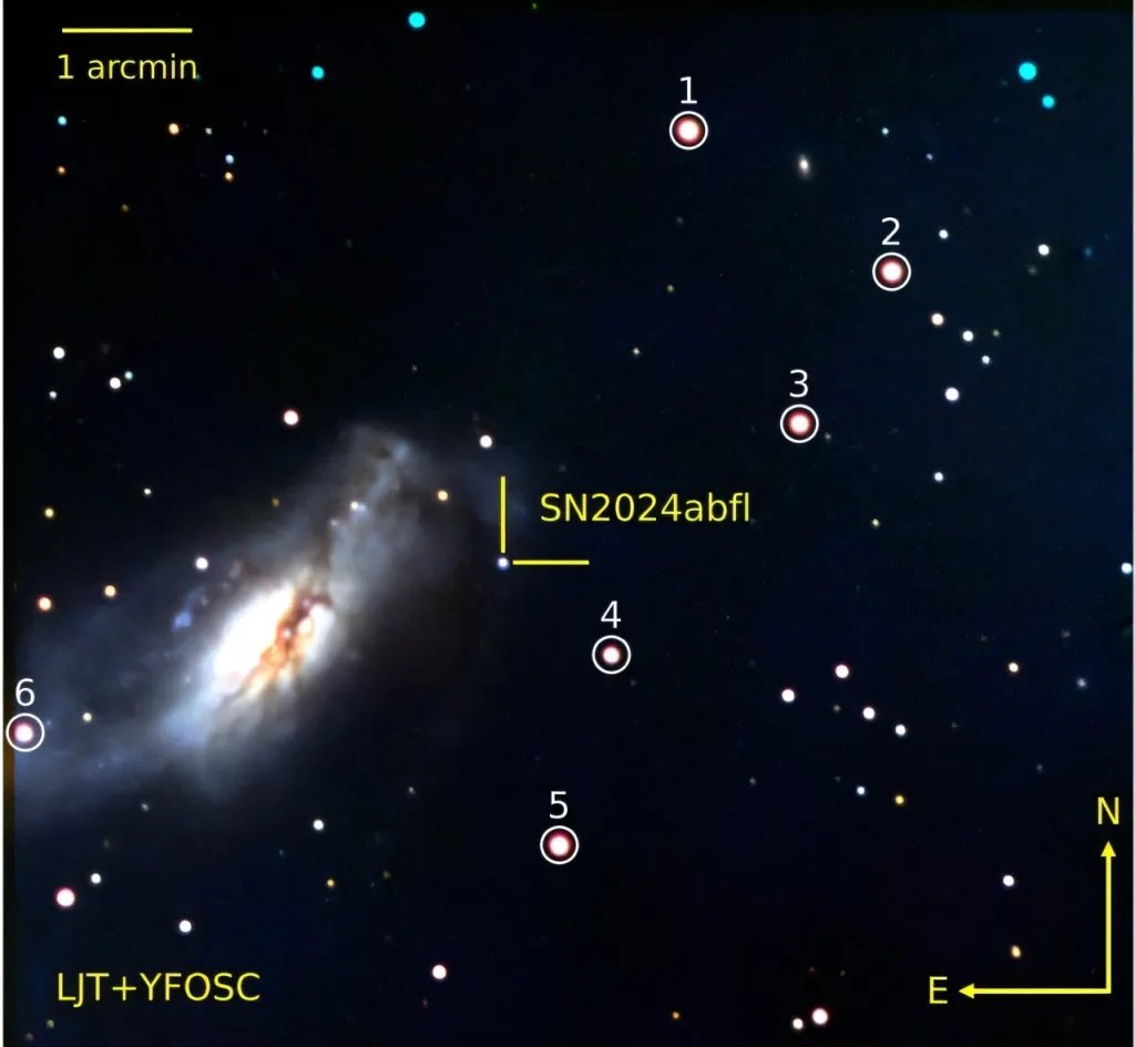 El origen de SN 2024abfl parece apuntar a un escenario poco habitual. Según los investigadores, todo indica que proviene de una estrella de baja masa dentro del rango de colapso del núcleo, algo que rompe con la idea tradicional de que estas explosiones requieren estrellas masivas.