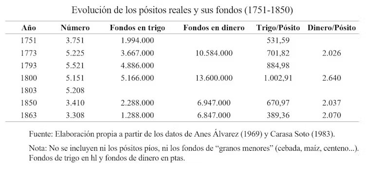 Eliminada la competencia de los grandes y pequeños tratantes de grano, los pósitos prosperaron como nunca antes. Hacia 1800 almacenaban 2,5 veces más cereal que en 1750, la cuarta parte del trigo cosechado en todo el país. Pero ese trigo nunca salía del ámbito municipal. Los funcionarios del pósito solo estaban obligados con sus vecinos, a los que prestaban grano o dinero para la siembra o la tahona.