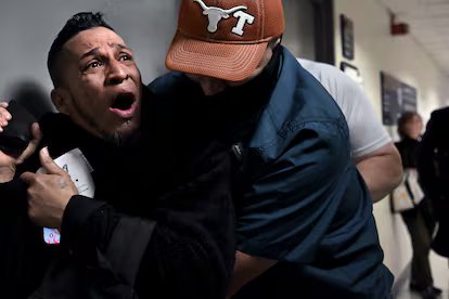 Fue un rayo de empatía inesperado. El marido de la mujer acababa de ser detenido por agentes de inmigración en un tribunal federal en el Bajo Manhattan, que se ha convertido en el epicentro de la ofensiva inmigratoria del Gobierno de Donald Trump en Nueva York. La fotógrafa Carol Guzy (Belén, Pensilvania, 69 años) vio a los agentes llevarse al hombre mientras su esposa gritaba “¡por favor, ayúdenme!” y sus dos hijos lloraban. Guzy decidió acompañar a la familia hasta la salida. Allí, la mujer se dio cuenta de que no tenía sus llaves; sin manera de volver a su casa, acabó envuelta en llantos otra vez. Un agente de seguridad de la corte se le acercó para ofrecer su ayuda y, ante tal escena, también rompió a llorar. Entre sus propias lágrimas, Guzy captó el momento con su cámara.