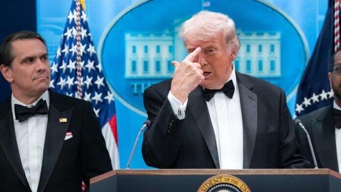 Trump ha explicado en rueda de prensa cerca de la media noche en la Casa Blanca cómo vivió la evacuación de la tradicional cena de Corresponsales de la Casa Blanca después de que un hombre fuera “interceptado” tras intentar traspasar la seguridad del evento armado con un arma larga.